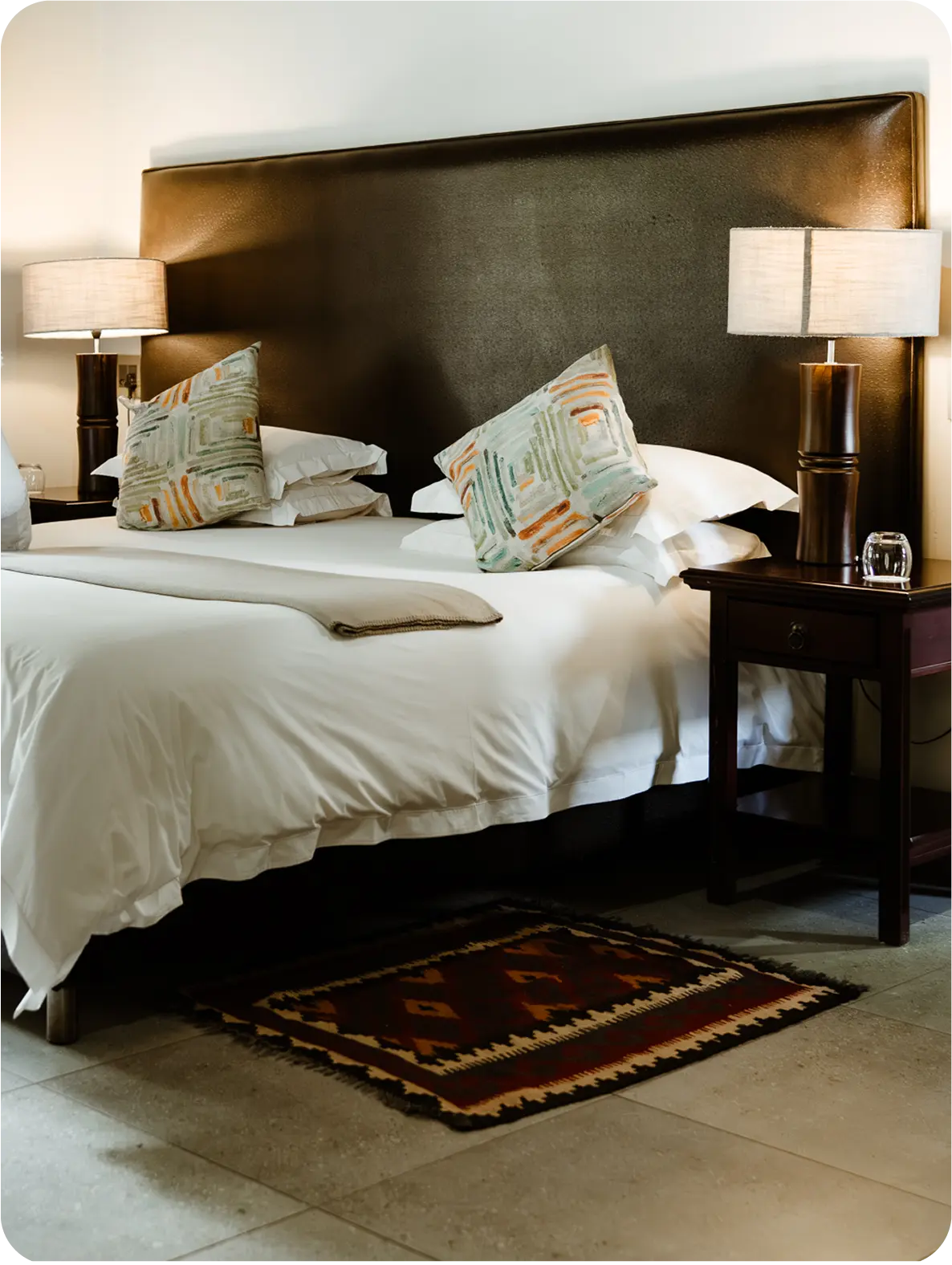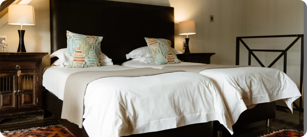 We have 16 comfortable and stylish twin rooms to choose from at Mongena Private Game Lodge. 6 of these rooms boast a bath tub and shower, while the other 11 are shower-only twin rooms. Each room sleeps two people comfortably on twin beds or a king-size bed.