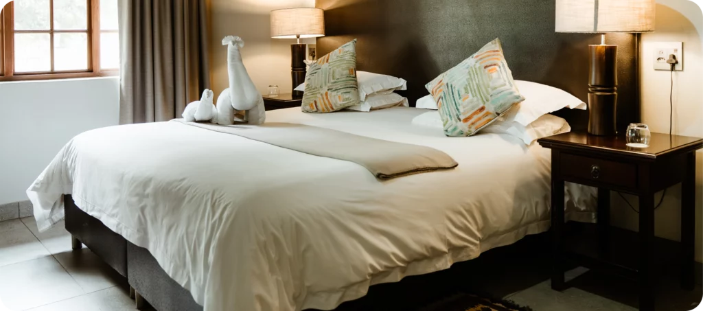 Escape to Mongena Main Lodge, where luxury meets nature in the heart of Gauteng’s only Big Five game reserve. Enjoy air-conditioned en-suite rooms, with some featuring both a bath and shower, plus a nightly turn-down service for added comfort. Wake up to zebra, springbuck, and nyala roaming freely in the lodge gardens, just steps from the restaurants and swimming pool.